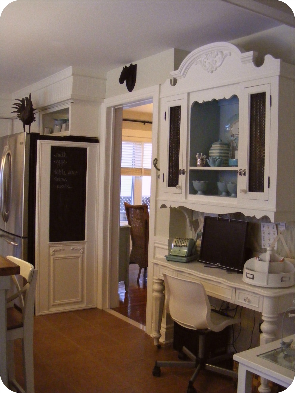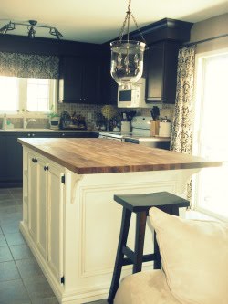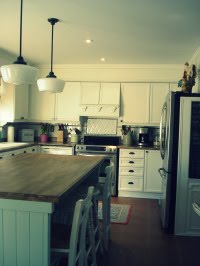 A kitchen makeover I did for a client recently , added beadboard right over some ugly tile using no more nails, love the last minute decision to add the tin panel behind the stove , the client painted the cabinets white , they were oak , I also added beadboard to the bulk head , I need to get a before shot ...