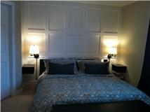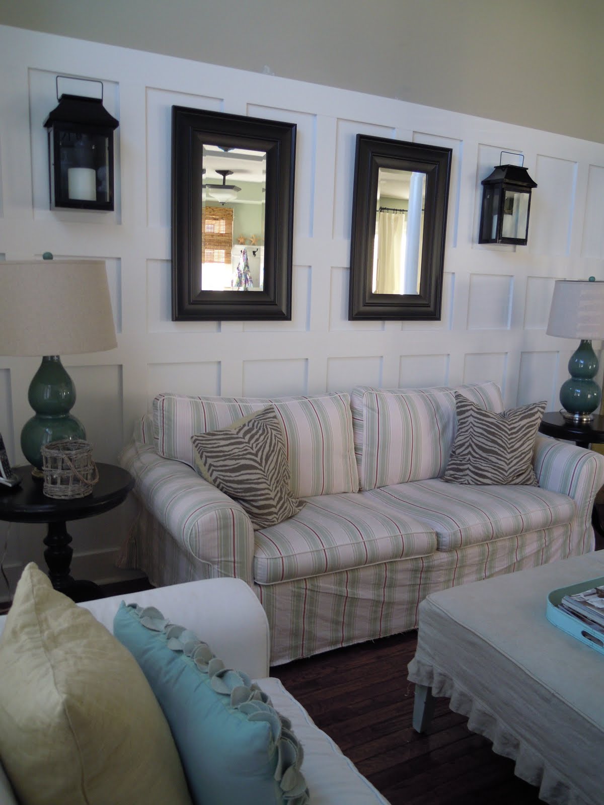 A paneled wall I did over the summer for a client , including floating side tables I made custom. Sorry its so small I need to go take new shots with my real camera.