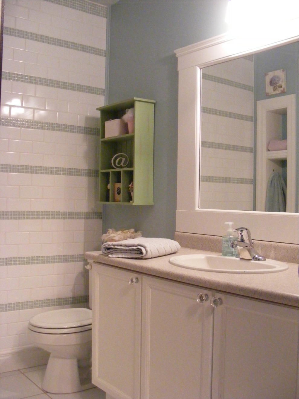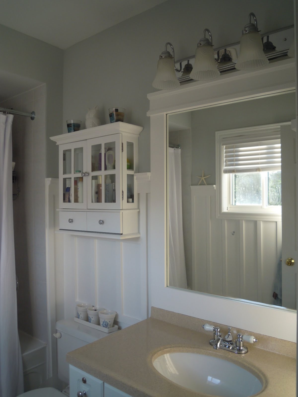 A sweet bathroom makeover I did , including new counter top and sink , board and batten and reframing the mirror with trim , love this transformation, so signature beachy.